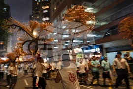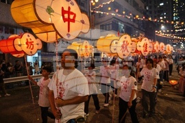 Participants hold lanterns during the Tai Hang Fire Dragon Dance performance to celebrate the Mid-Autumn Festival in Hong Kong, Sunday, Oct. 5, 2025. (AP Photo/Chan Long Hei)
