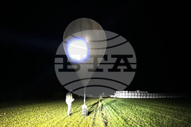In this undated photo released by the State Border Guard Service, an officer inspects a balloon used to carry cigarettes into Lithuania, because Belarussian smugglers often use them to ferry the contraband into the European Union (State Border Guard Service via AP)