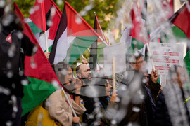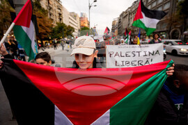 People march holding Palestinian flags during a pro-Palestinian rally in Bucharest, Romania, Sunday, Oct. 5, 2025. (AP Photo/Vadim Ghirda)