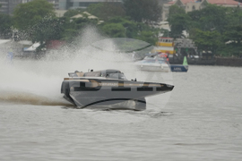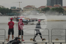 People competes during the E1 powerboat Grand Prix Championship race in Lagos, Nigeria, Sunday, Oct. 5, 2025. (AP Photo/Sunday Alamba)