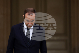 French outgoing Prime Minister Sebastien Lecornu, who resigned just a day after naming his government, walks back after delivering his statement at the Hotel Matignon in Paris, Monday, Oct. 6, 2025. (Stephane Mahe/Pool via AP)