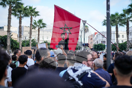 People take part in a youth led protest against corruption and calling for healthcare and education reforms, in Casablanca, Morocco, Sunday, Oct. 5, 2025. (AP Photo/Mosa'ab Elshamy)