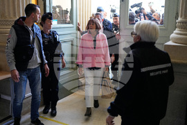Gisele Pelicot arrives to an appeals court set to hear the case of a man challenging his conviction, less than a year after the landmark verdict in a drugging and rape trial that shook France, Monday, Oct. 6, 2025 in Nimes, southern France. (AP Photo/Lewis Joly)