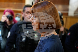 Gisele Pelicot sits in an appeals court set to hear the case of a man challenging his conviction, less than a year after the landmark verdict in a drugging and rape trial that shook France, Monday, Oct. 6, 2025 in Nimes, southern France. (AP Photo/Lewis Joly)