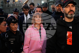Gisele Pelicot leaves the appeals court after the hearing in the case of a man challenging his conviction, less than a year after the landmark verdict in a drugging and rape trial that shook France, Monday, Oct. 6, 2025 in Nimes, southern France. (AP Photo/Lewis Joly)