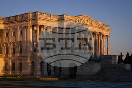 The House for Representatives at the Capitol is illuminated at dawn on the 6th day of the government shutdown, in Washington, Monday, Oct. 6, 2025.