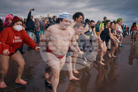 FILE - Revelers enter the cold water during the annual Polar Bear Plunge on New Year's Day, Jan. 1, 2025, in New York. (AP Photo/Andres Kudacki, file)