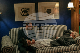 This image released by Amazon MGM Studios shows Michael Stuhlbarg, left, and Julia Roberts in a scene from "After the Hunt." (Yannis Drakoulidis/Amazon MGM Studios via AP)