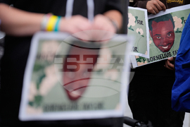People gather for a rally for Cornelius Taylor at the Atlanta City Hall on Monday, Oct. 6, 2025, in Atlanta. Taylor, died after he was crushed by a bulldozer at a homeless encampment in January. (AP Photo/Brynn Anderson)