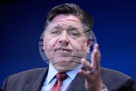 Governor JB Pritzker talks to media at a news conference in Chicago, Monday, Oct. 6, 2025. (AP Photo/Nam Y. Huh)