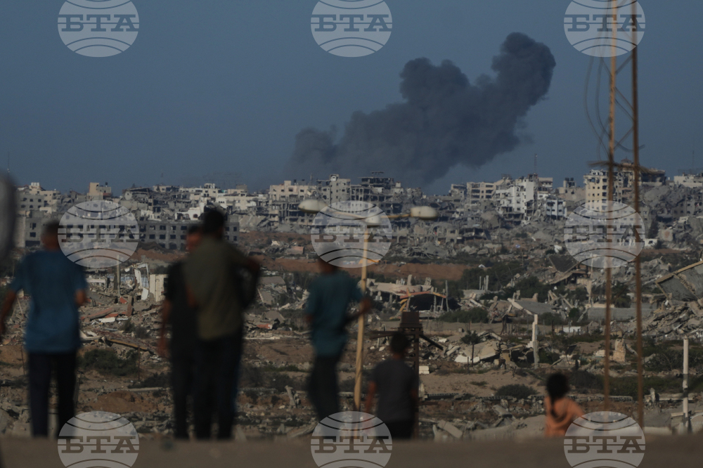 Smoke rises following an Israeli military strike in Gaza City, as seen from the central Gaza Strip, Tuesday, Oct. 7, 2025. (AP Photo/Abdel Kareem Hana)