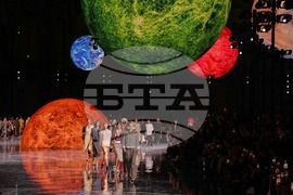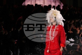 Designer Matthieu Blazy accepts applause after the Chanel Spring/Summer 2026 collection presented in Paris, Monday, Oct. 6, 2025. (AP Photo/Aurelien Morissard)