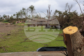 Many trees are stripped and uprooted on June 25, 2025 following the EF5 tornado in Enderlin, N.D. (North Dakota Governor's Office via AP)