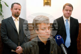 FILE - State Office for Nuclear Safety (SUJB) chairwoman Dana Drabova, center, speaks to journalists during the press conference on problems at nuclear power plant Temelin, in Prague, March 15, 2007. (AStanislav Zbynek/CTK via AP)