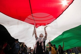 University students demonstrate in support of the Palestinians and against Israel's war in Gaza, in Santiago, Chile, Tuesday, Oct. 7, 2025. (AP Photo/Esteban Felix)