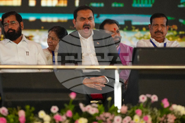The Chairman of the Adani Group, Gautam Adani, reacts during the inauguration ceremony of the Navi Mumbai International Airport in Navi Mumbai, India, Wednesday, Oct. 8, 2025. (AP Photo/Rafiq Maqbool)