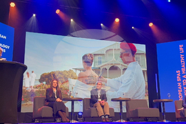 Хаапсалу (8 октомври 2025) Годишен Европейски конгрес по СПА и балнеология 2025, организиран от Европейската СПА асоциация и Министерството на икономиката и индустрията на Естония, който се провежда в естонския град Хаапсалу. Панелна дискусия – "Скритата здравна сила на Европа: защо спа центровете имат място в бъдещето на общественото здраве". На снимката: д-р Меглена Плугчиева, посланик на Български съюз по балнеология и СПА туризъм (БСБСПА).