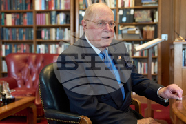 Retired Supreme Court Justice Anthony Kennedy sits down for an interview with The Associated Press, Wednesday, Oct. 8, 2025, in his office at the Supreme Court in Washington. (AP Photo/Jacquelyn Martin)