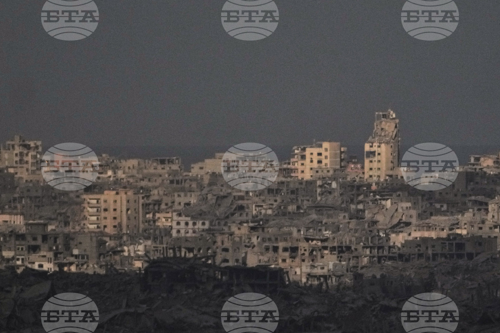 Buildings that were destroyed during the Israeli ground and air operations stand in the northern Gaza Strip, as seen from southern Israel, Thursday, Oct. 9, 2025, following the announcement that Israel and Hamas have agreed to the first phase of a peace plan to pause the fighting. (AP Photo/Ariel Schalit)