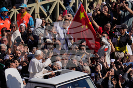 Pope Leo XIV arrives for a Mass for the participants in the jubilee of ordained people in St. Peter's Square, at the Vatican, Thursday, Oct. 9, 2025. (AP Photo/Gregorio Borgia)