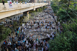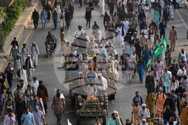 Supporters of Islamist party 'Tehreek-e-Labbaik Pakistan' take part in a rally to show their solidarity with Palestinian people, in Lahore, Pakistan, Friday, Oct. 10, 2025. (AP Photo/K.M. Chaudary)