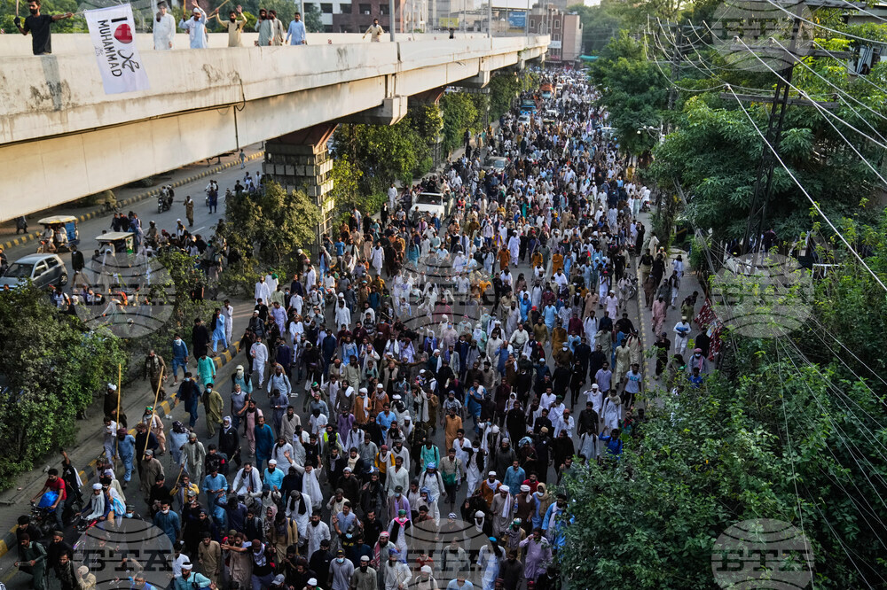 Thousands of supporters of Islamist party 'Tehreek-e-Labbaik Pakistan' take part in a rally to show their solidarity with Palestinian people, in Lahore, Pakistan, Friday, Oct. 10, 2025. (AP Photo/K.M. Chaudary)