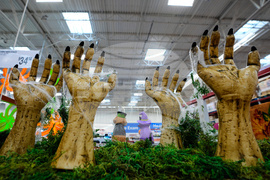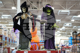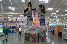 Halloween decorations are on display at a Sam's Club, Wednesday, Sept. 24, 2025, in Bentonville, Ark. (AP Photo/Charlie Riedel)