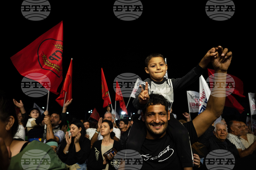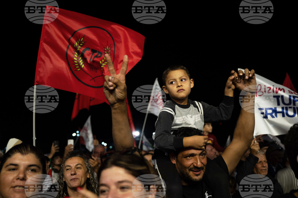 Supporters of the newly elected leader Tufan Erhurman celebrate after winning the leadership election in the Turkish occupied northern part of the divided capital Nicosia, Cyprus, Sunday, Oct. 19, 2025. (AP Photo/Nedim Enginsoy)