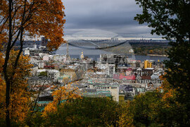 The Dnieper River runs through Kyiv, Ukraine, Sunday, Oct. 19, 2025. (AP Photo/Julia Demaree Nikhinson)