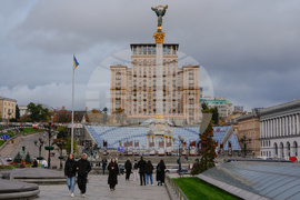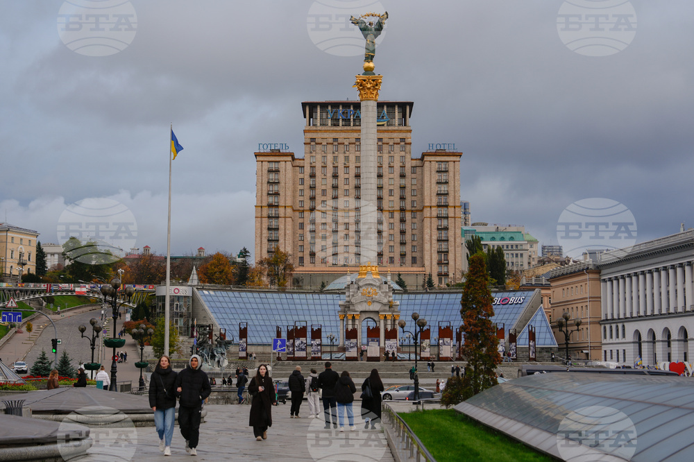 Independence Monument is seen in Independence Square, Sunday, Oct. 19, 2025, in Kyiv, Ukraine. (AP Photo/Julia Demaree Nikhinson)