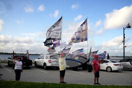 Supporters watch as President Donald Trump's motorcade departs Trump's Mar-a-Lago estate in Palm Beach, Fla., Sunday, Oct. 19, 2025. (AP Photo/Mark Schiefelbein)