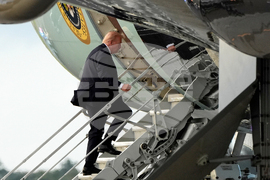President Donald Trump walks down the stairs of Air Force One upon his arrival at Joint Base Andrews, Md., Sunday, Oct. 19, 2025, after visiting his Mar-a-Lago estate in Palm Beach, Fla. (AP Photo/Luis M. Alvarez)