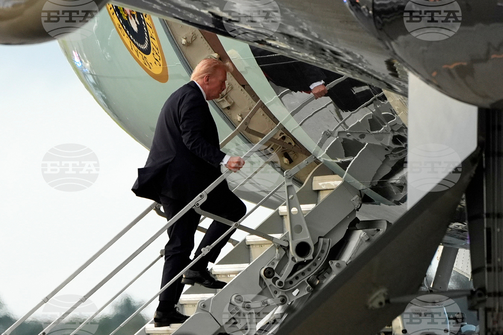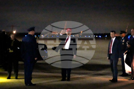 President Donald Trump walks down the stairs from Air Force One upon his arrival to Joint Base Andrews, Md., Sunday, Oct.. 19, 2025. (AP Photo/Jose Luis Magana)