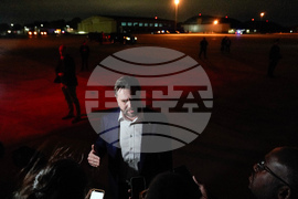 U.S. Vice President JD Vance speaks with reporters upon his arrival at Joint Base Andrews, Md., Sunday, Oct. 19, 2025, after attending the 250th anniversary celebration of the Marine Corps at Camp Pendleton in California. (Oliver Contreras/Pool Photo via AP)