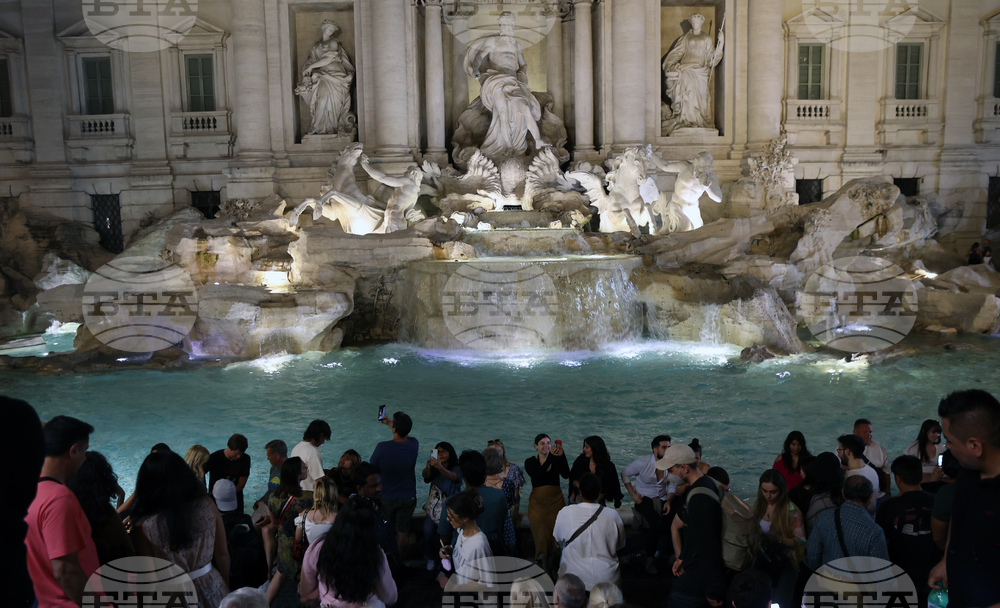 Рим(23 май 2022) Ежедневие в столицата на Италия. На снимката: Туристи при фонтана ди Треви. Пресфото-БТА снимка: Владимир Шоков