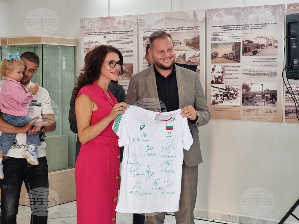 Ямбол (18 септември 2025) В културно-информационния център "Безистен" в Ямбол се открива изложба с над 400 артикула и вещи на спортни легенди. Експозицията е дело на Асоциация "Докосни дъгата". В изложбата са показани оригинален екип на баскетболната легенда Майкъл Джордан и щафетната палка, с която лекоатлетът Карл Люис печели рекорди на олимпийски игри. Специални кътове представят легендите в европейския и световния футбол Христо Стоичков и Димитър Бербатов, българската супер звезда в тениса Григор Димитров и олимпийският, световният и европейски шампион по вдигане на тежести Карлос Насар. Посетителите могат да видят и оригинален олимпийски факел от Зимните олимпийски игри в Торино 2006. Показани са лични вещи на световни, олимпийски и европейски шампиони, прославили България в различни спортове – Армен Назарян, Божидар Андреев, Ивет Горанова, Матей Казийски, Петър Лесов, Детелин Далаклиев, Станимира Петрова, Боряна Калейн, Биляна Дудова, Габриела и Стефани Стоеви, и още десетки български спортни легенди. На снимката (от ляво надясно): Денислава Ангелова, организатор на изложбата и основател на Асоциация "Докосни дъгата" и зам.-министърът на младежта и спорта Петър Младенов.