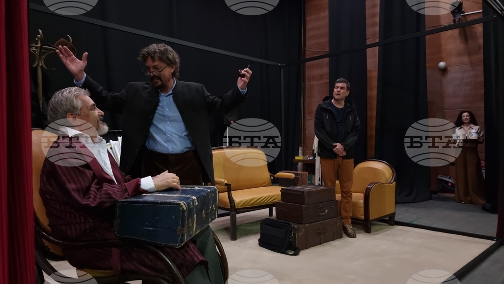 Ямбол (20 септември 2025) Репетиция на постановката „За кого се вдига завесата“ по пиесата на Магда Борисова. Спектакълът ще бъде поставен за първи път на сцена у нас от режисьора Бойко Илиев заедно с ямболския Драматичен театър „Невена Коканова“. Сценографията е дело на Антония Соколова. На сцената публиката ще види актьорите от трупата на ямболския театър Милен Каракамушев, Димитър Димитров и Георги Ружичка. Единствената женска роля е поверена Елена Петрова. Премиерата ще е на 2 октомври на ямболска сцена. Със спектакъла театър „Невена Коканова“ открива новия си творчески сезон.