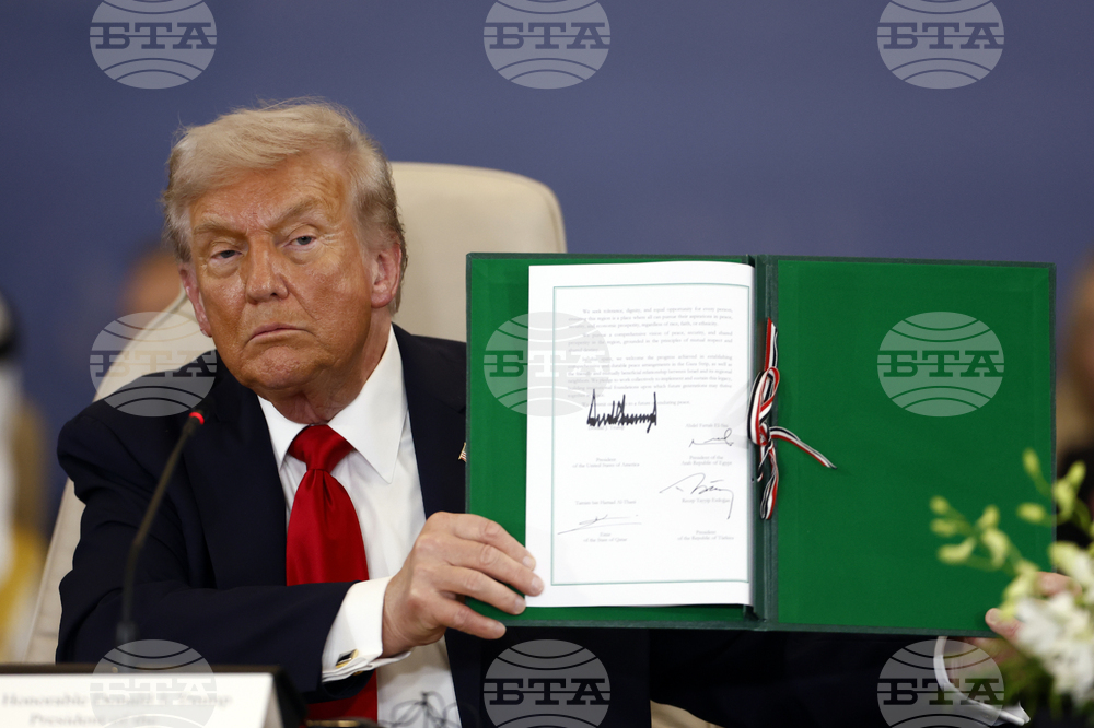 Президентът на САЩ Доналд Тръмп и другите посредници подписаха документа за прекратяването на огъня между Израел и „Хамас“ в ивицата Газа на церемония в Египет, предаде ДПА.
