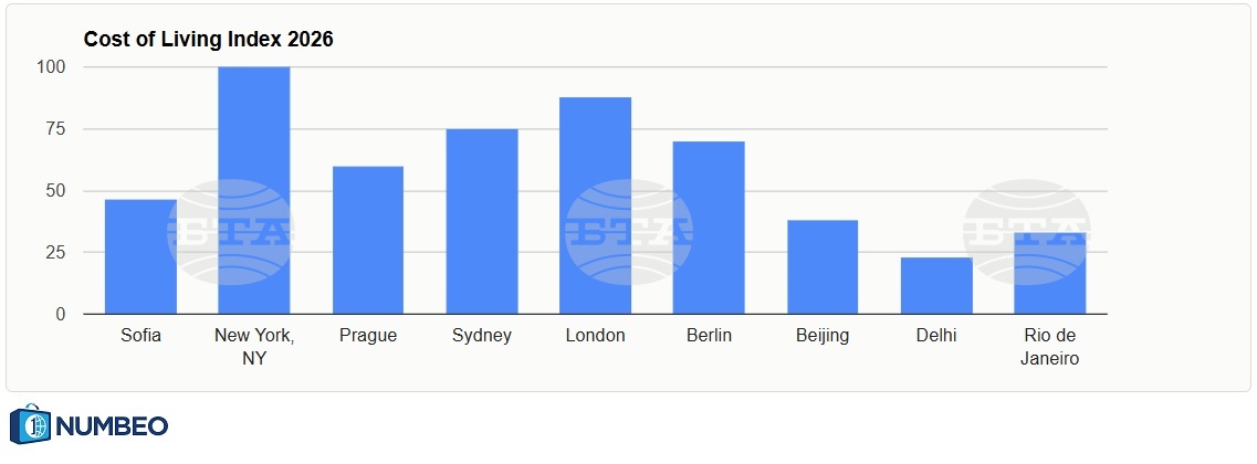 site.btaСофия се нарежда на 301-во място сред най-скъпите градове в света, столицата е с 66,4 на сто по-евтина от Ню Йорк, сочи класация на „Нумбео“