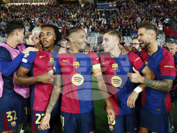 Третото попадение падна в добавеното време, когато Рафиня се разписа за втори път. Той получи топката по лявото крило, надигра десния бек Рафаел Герейро един на един и изпрати неспасяем удар в далечния ъгъл на бившия германски национал Нойер. Бразилецът оформи хеттрика си с идентичен шут 11 минути след почивката, когато получи феноменален пас от Ламин Ямал и пое топката на скорост с гърди.