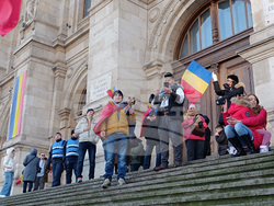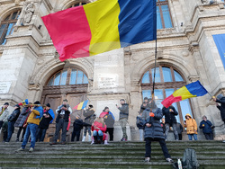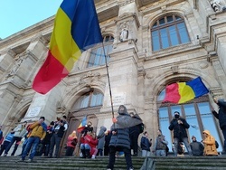В първия ден от новата година около 30 души се събраха на стълбите пред Апелативния съд в Букурещ, за да протестират срещу решението на Конституционния съд да анулира първия тур на президентските избори в Румъния.