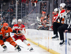 Тайсън Фьорстър направи хеттрик, а новобранецът Алексей Колосов спаси 24 удара към вратата си при успеха на Филаделфия с 8:5 над Ню Йорк Рейджърс.