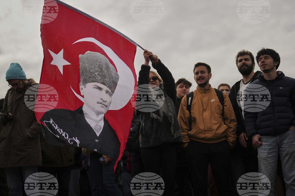 Студенти протестират в подкрепа на задържаните вследствие на протестите в подкрепа на кмета на Истанбул Екрем Имамоглу. (8 април 2025 г.) Снимка: AP Photo/Francisco Seco.