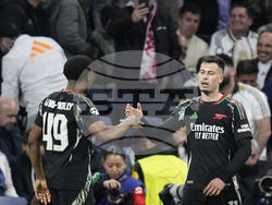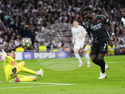 Лондончани направиха втори голям мач срещу защитаващия титлата си Реал Мадрид, като след 2:1 на "Сантиаго Бернабеу" постигнаха втора победа и с общ резултат 5:1 се класираха за Топ 4 в най-престижния турнир в Европа. През първото полувреме Букайо Сака пропусна дузпа, която бе майсторски спасена от белгийския национал Тибо Куртоа. Малко по-късно бе отсъдена дузпа и за задържане на Килиан Мбапе от героя в първата среща Деклан Райс, който получи и жълт картон. След преглед със системата за видеоасистенция на съдиите (ВАР) френският рефер Франсоа Летексие отмени наказателния удар и предупреждението на Райс, което го вадеше от първия полуфинал. Преди почивката Реал не нанесе нито един точен удар във вратата на Давид Рая, въпреки че играта се развиваше основно в половината на гостите.