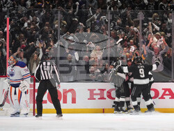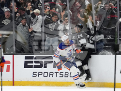 Лос Анджелис Кингс пропиля преднина от четири гола, но все пак спечели с 6:5 срещу Едмънтън Ойлърс и поведе след първия мач от серията между двата отбора в Западната конференция на НХЛ. Филип Дано отбеляза второто си попадение 41.1 секунди преди сирената, а останалите голове бяха дело на Андрей Кузменко, Ейдриан Кемп, Куинтън Байфийлд и Кевин Фиала.