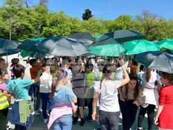 Повече от 100 деца от 4 старозагорски училища разпънаха чадъри в няколко нюанса на зеления цвят пред Община Стара Загора днес следобед. Мащабният флашмоб изобрази дърво с разперени клони, а идеята бе по забавен и непринуден начин третокласниците и четвъртокласниците да отбележат днешния Международен ден на Земята 22-ри април.