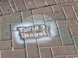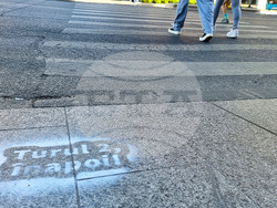 БТА, Букурещ, Румъния (4 май 2025) Надпис "Върнете втори тур" върху плочки на тротоар до площад "Унирий" в центъра на Букурещ/Снимка: Илко Вълков/БТА