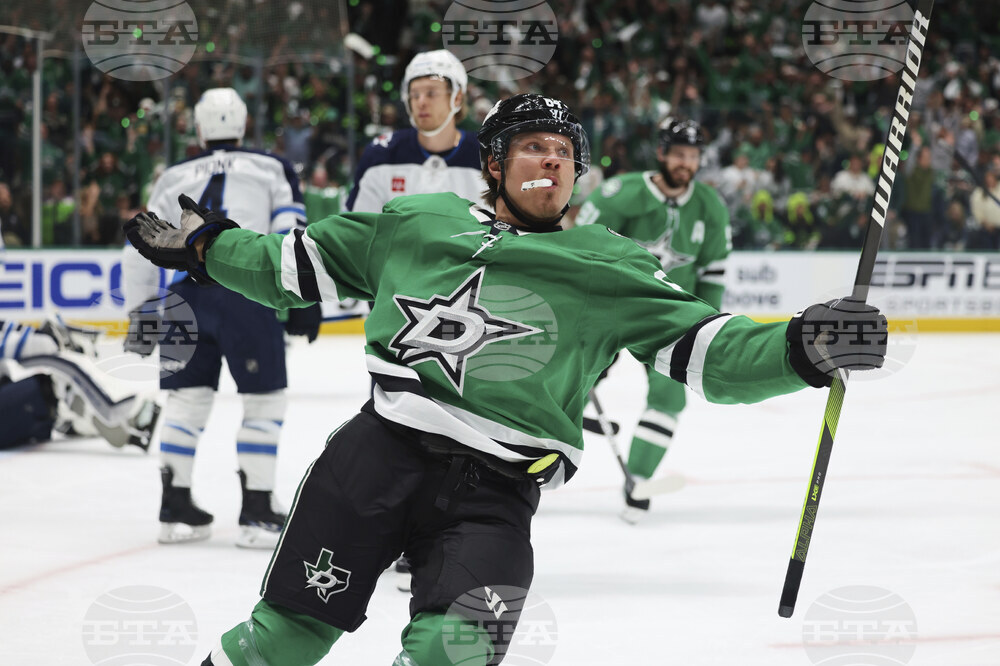 Микаел Гранлунд реализира първи хеттрик в кариерата си в плейофите, за да изведе Далас до победа с 3:1 над гостуващия Уинипег Джетс и да доближи тима до една победа от място във финалната четворка за Купа "Стенли".