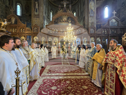 Празнично слово произнесе Знеполският епископ Мелетий. От името на духовниците и присъстващите в катедралния храм митрополит Пахомий беше поздравен от протосингелът на Видинска митрополия архимандрит Антим и поднесе букет.