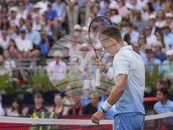 Вторият сет се разви подобно, като всеки взимаше сервиса си, без да даде на съперника и най-малкия шанс за пробив. Така се стигна до тайбрек, в който чехът поведе с 4:2 след мини пробив, но испанецът успя да изравни. При 5:5 Алкарас изненадващо направи двойна грешка, а след това Иржи Лехечка спечели частта с мощен сервис и изравни.
